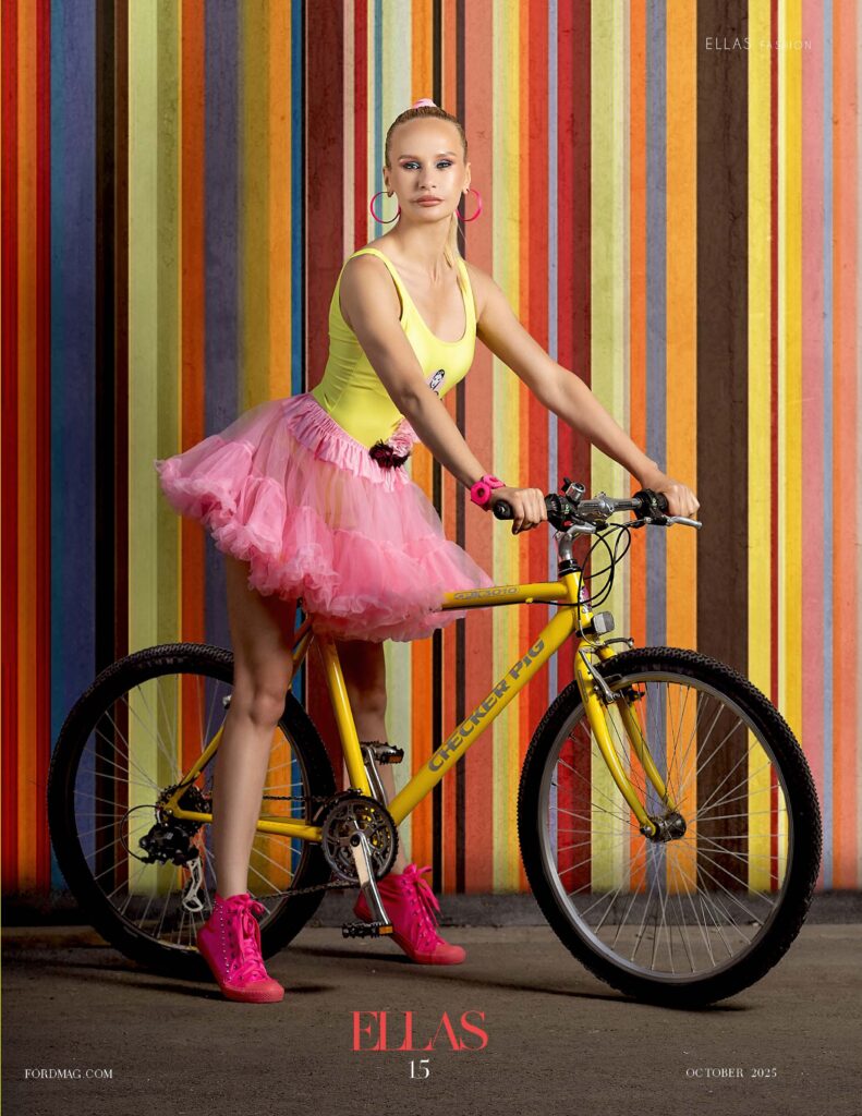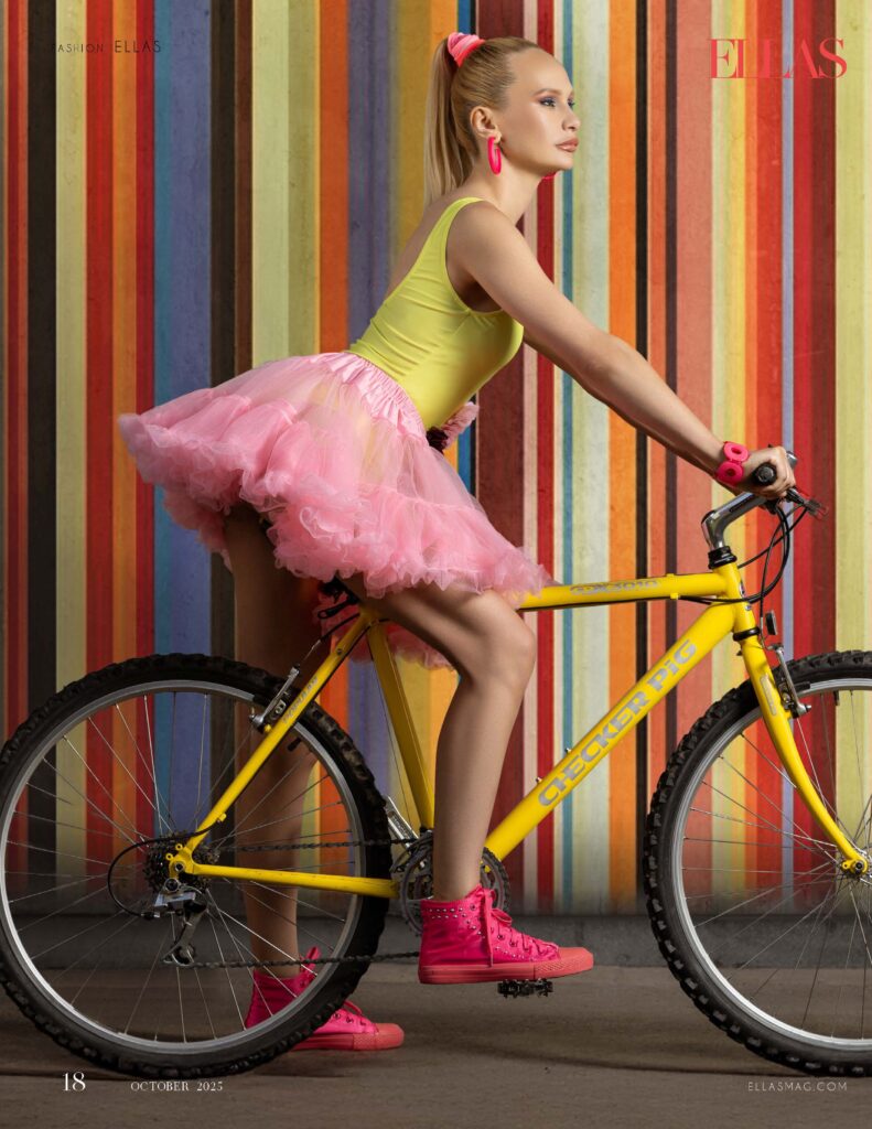 In this vibrant photo session, the iconic model Alina Fanta (@fanta.alina) takes us on a retro-fitness ride, blending cycling, skateboarding,