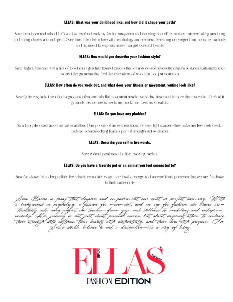Sara Baena: A woman who embraces elegance and strength with softness—blending fashion, movement, and emotional depth into everything I do.